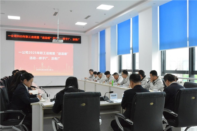 活动当日,熊骁辉一行抵达娇子厂和沥青厂后,首先为员工们送上了保暖慰问品,让大家在寒冷的冬日感受到了企业的温暖。随后,娇子厂和沥青厂分别进行了生产运营情况汇报,详细介绍了厂站近期的工作成果与发展态势,展示了员工们的辛勤付出和厂站的良好发展势头。在听取汇报后,熊骁辉对厂站取得的成绩给予了高度肯定。他赞扬了厂站员工的拼搏精神和敬业态度,强调大家的努力为公司的发展做出了重要贡献。